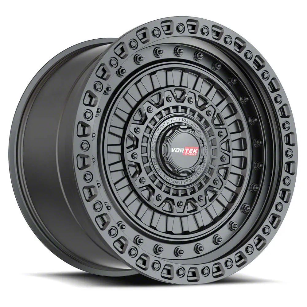 The 17x9 Vortek Off-Road VRD-703 Matte Black 6-Lug Wheel is completed in a high-quality matte black finish, which looks great. Thanks to a durable clear coat, the finish also protects against the rigors of driving.