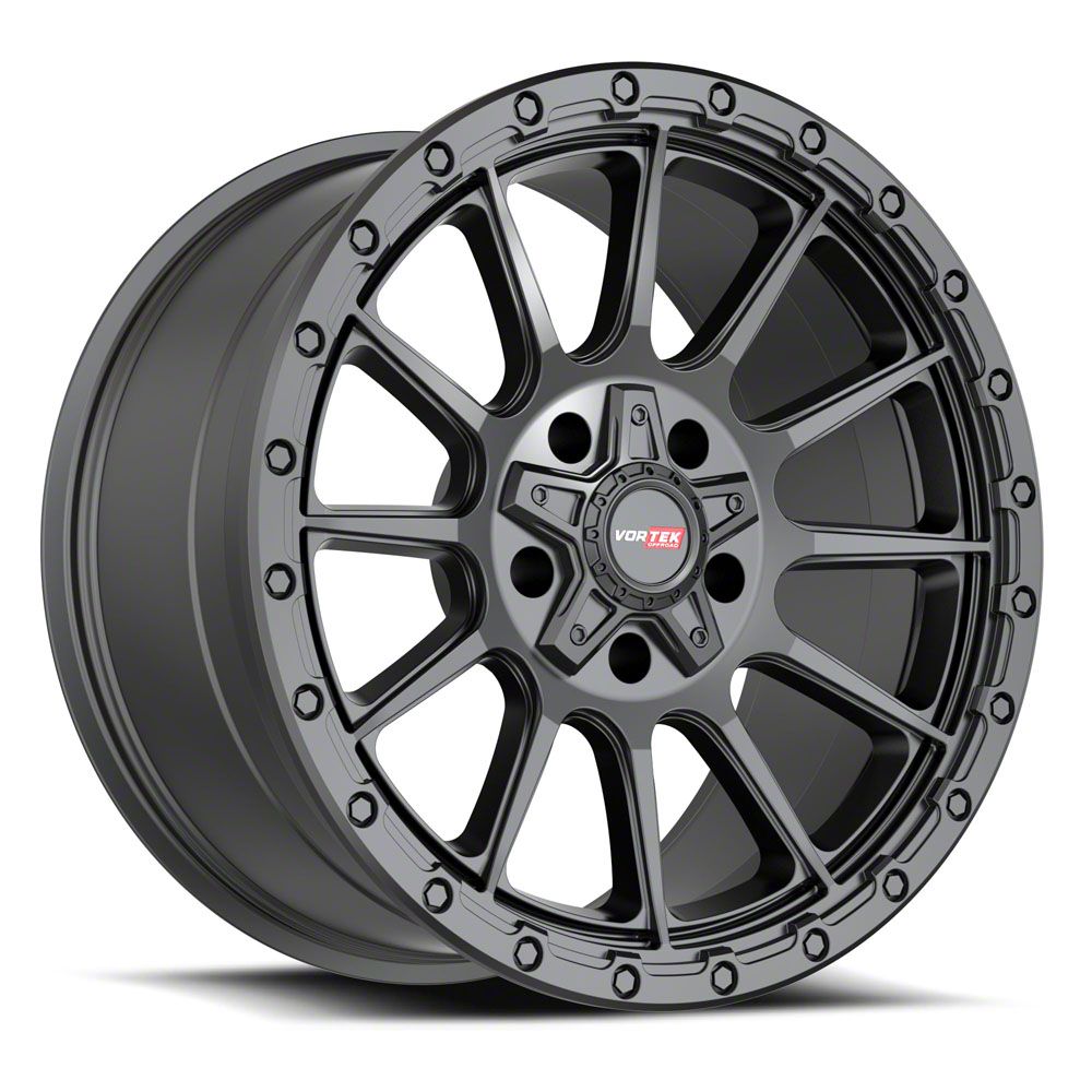 This 18x9 Vortek Off-Road VRT-606 Matte Black Wheel; 18x9; 0mm Offset is completed in a high-quality matte black finish that will make everyone take notice. For added looks and strength, the wheel features a durable clear coat that withstands the rigors of daily driving.