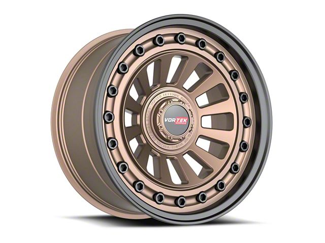Vortek Off-Road VRD-702 Matte Bronze with Black Bolts and Lip Wheel; 17x9; -12mm Offset is a visually striking choice, offering a combination of rugged durability and modern styling. Its design complements off-road and sporty vehicles alike, enhancing the overall aesthetic appeal.