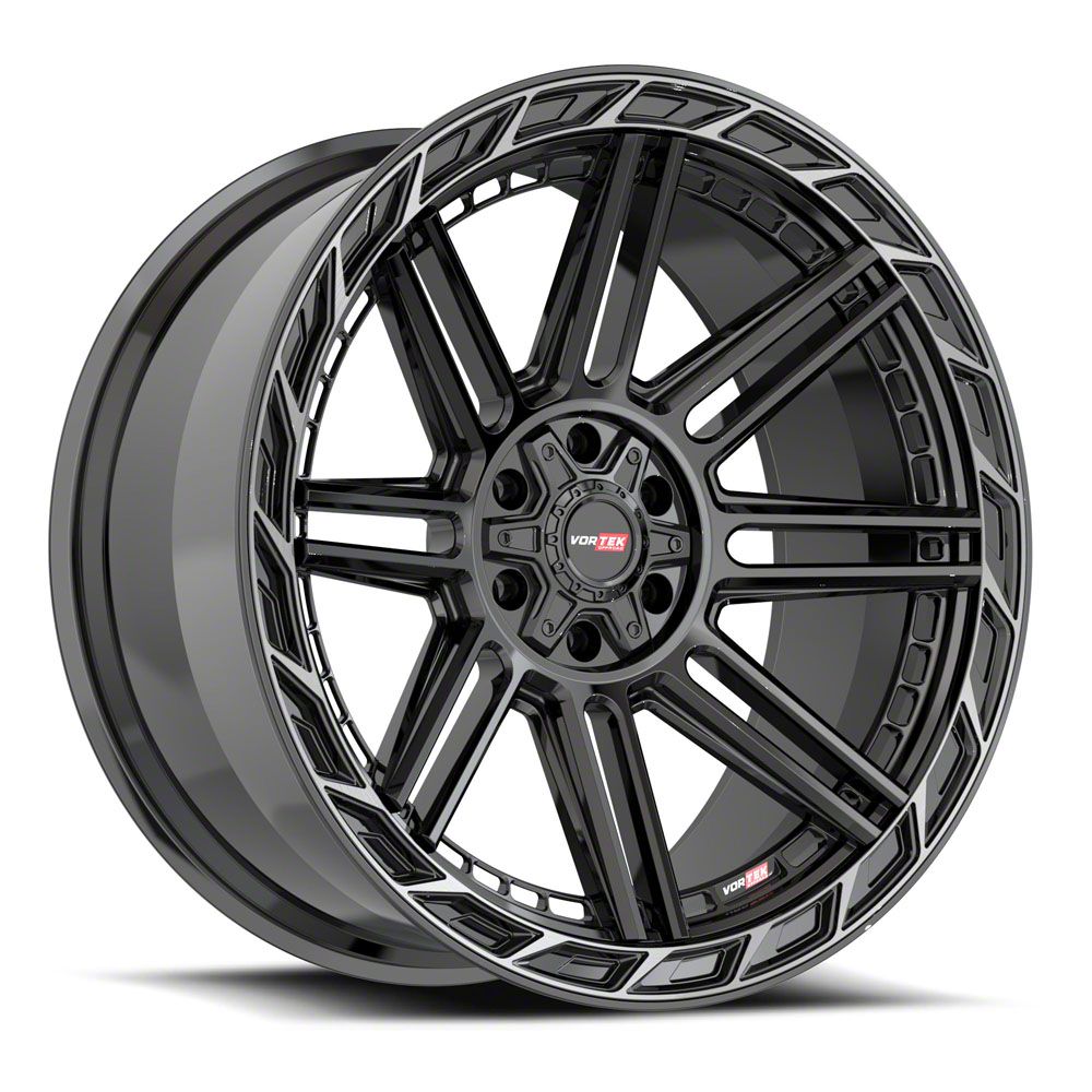 This 24x11 Vortek Off-Road VRP-501 All Black Center and Diamond Cut Ring with Dark Tint Wheel; 24x11; -24mm Offset is completed in a high-quality all black center finish with diamond cut ring and dark tint to make your wheel the envy of everyone. For added looks and durability, the wheels has a durable clear coat that withstand the rigors of daily driving.