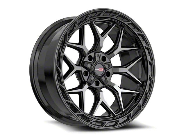 Vortek Off-Road VRP-504 Black Diamond Cut with Dark Tint Wheel; 20x9; 12mm Offset is a visually striking choice, offering a combination of rugged durability and modern styling. Its design complements off-road and sporty vehicles alike, enhancing the overall aesthetic appeal.