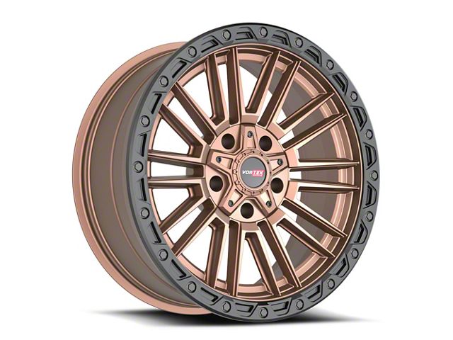 This 20x9.5 Vortek Off-Road VRT-604 Matte Bronze with Black Bead Ring Wheel; 20x9.5; 0mm Offset is completed in a high-quality matte bronze finish with black accents to make your wheel the envy of everyone. For added looks and durability, the wheels has a durable clear coat that withstand the rigors of daily driving.