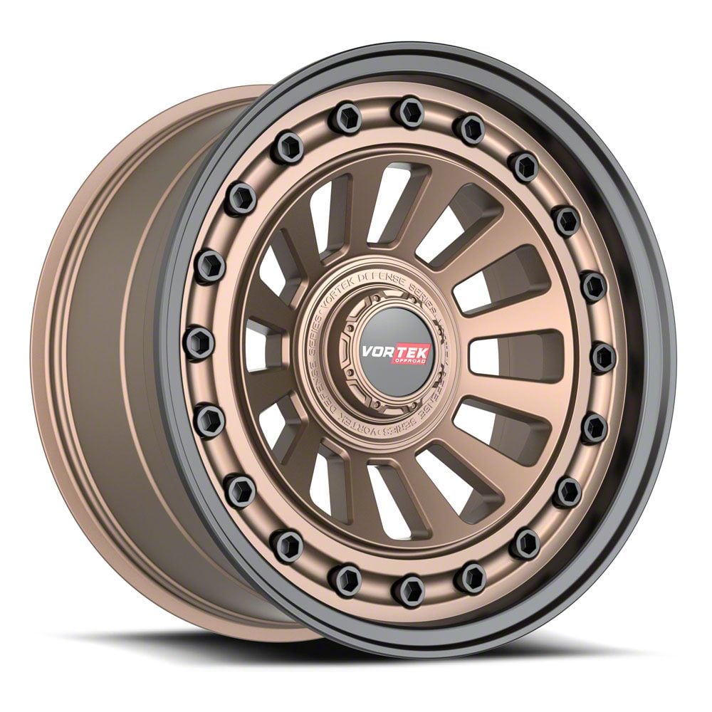 Vortek Off-Road VRD-702 Matte Bronze with Black Bolts and Lip Wheel; 18x9; -12mm OffsetThis wheel features a sleek and durable design, ideal for enhancing the aesthetic and style of your vehicle. Its quality craftsmanship ensures a perfect combination of form and function, suitable for any driver seeking a balance of style and dependability. Its high-quality finish ensures resistance against corrosion and wear over time. Designed for optimal visual appeal, this wheel complements a variety of vehicle styles.