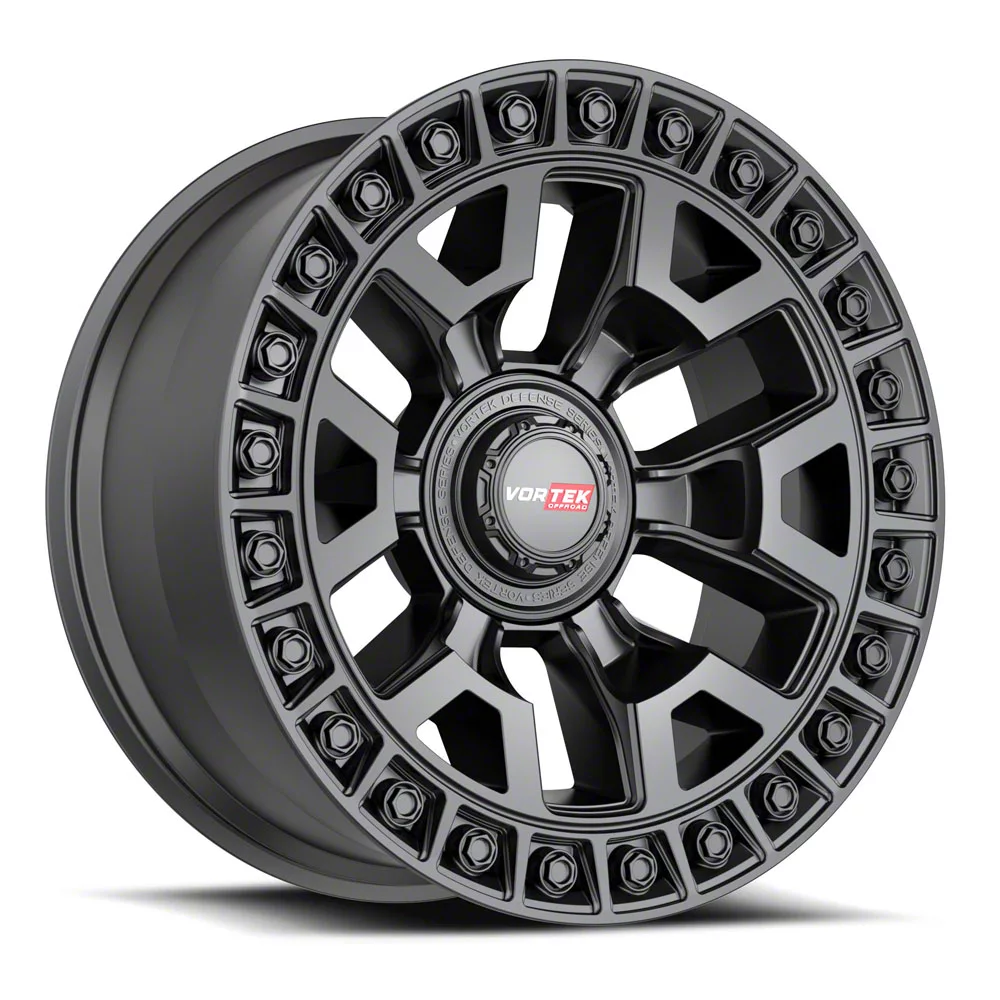 Vortek Off-Road VRD-704 Matte Black Wheel; 17x9; -12mm OffsetThis wheel features a sleek and durable design, ideal for enhancing the aesthetic and style of your vehicle. Its quality craftsmanship ensures a perfect combination of form and function, suitable for any driver seeking a balance of style and dependability. Its high-quality finish ensures resistance against corrosion and wear over time. Designed for optimal visual appeal, this wheel complements a variety of vehicle styles.