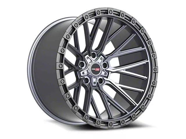 Vortek Off-Road VRT-608 Matte Titanium with Black Bead Ring Wheel; 20x10; -12mm OffsetThis wheel features a sleek and durable design, ideal for enhancing the aesthetic and style of your vehicle. Its quality craftsmanship ensures a perfect combination of form and function, suitable for any driver seeking a balance of style and dependability. Its high-quality finish ensures resistance against corrosion and wear over time. Designed for optimal visual appeal, this wheel complements a variety of vehicle styles.