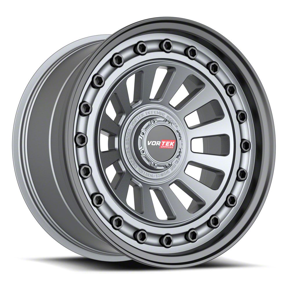 This 17x9 Vortek Off-Road VRD-702 Matte GunMetal with Black Bolts and Lip 6-Lug Wheel; 17x9; 0mm Offset is completed in a high-quality gunmetal finish with accents to make your wheel the envy of everyone. For added looks and durability, the wheels has a durable clear coat that withstand the rigors of daily driving.