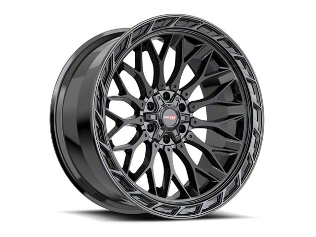 This 24x11 Vortek Off-Road VRP-503 Gloss Black 6-Lug Wheel; 24x11; -24mm Offset is completed in a high-quality gloss black finish that will make everyone take notice. For added looks and strength, the wheel features a durable clear coat that withstands the rigors of daily driving.
