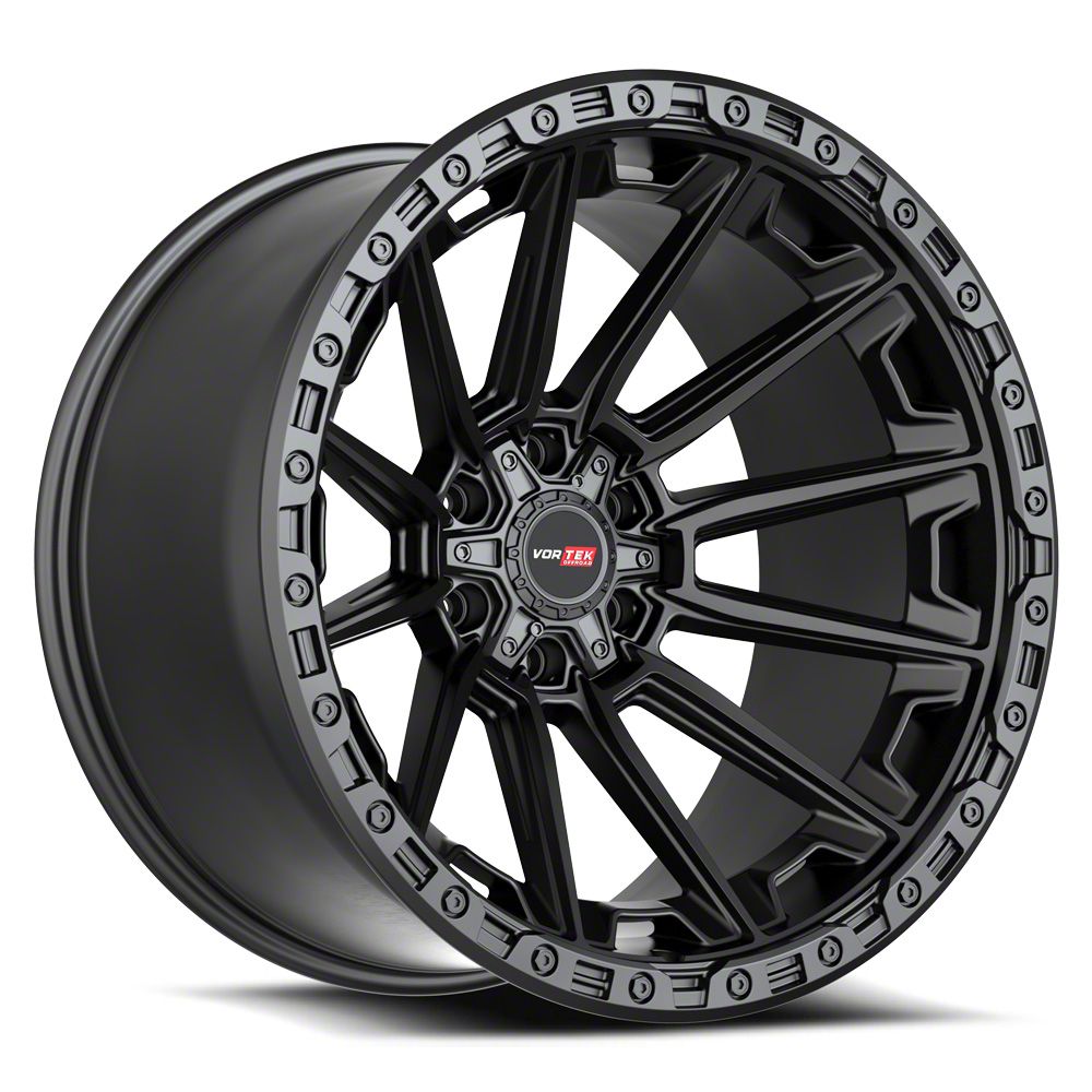 Vortek Off-Road VRT-601 Matte Black 6-Lug Wheel; 24x10; -12mm Offset is a visually striking choice, offering a combination of rugged durability and modern styling. Its design complements off-road and sporty vehicles alike, enhancing the overall aesthetic appeal.