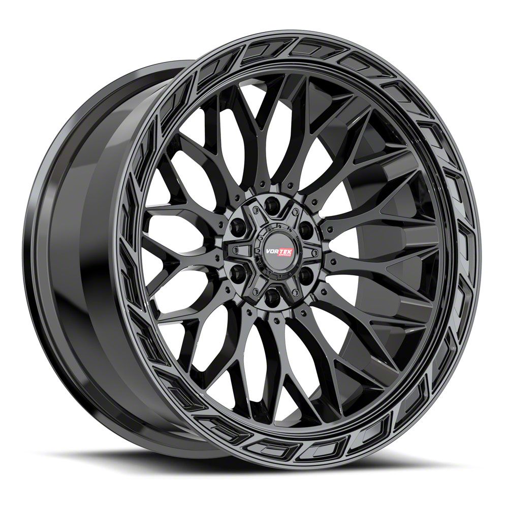 This 24x11 Vortek Off-Road VRP-503 Gloss Black 6-Lug Wheel; 24x11; -24mm Offset is completed in a high-quality gloss black finish that will make everyone take notice. For added looks and strength, the wheel features a durable clear coat that withstands the rigors of daily driving.
