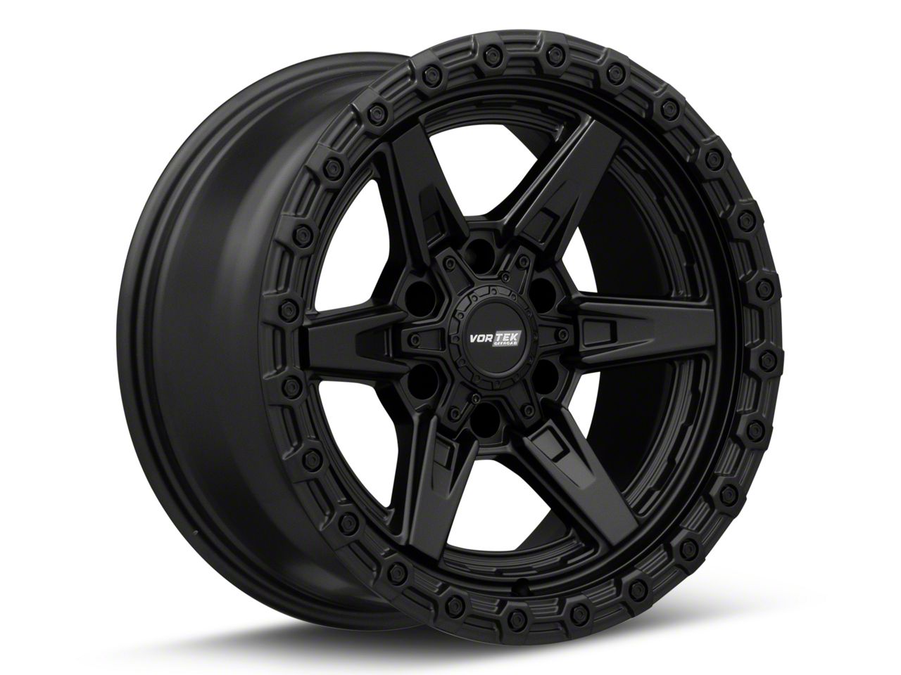 Vortek Off-Road VRT-602 Satin Black 6-Lug Wheel; 20x9; 20mm Offset exudes sophistication with its finish, offering a sleek and modern appeal to any vehicle it adorns. The design is meticulously crafted to enhance the aesthetic of your vehicle, giving it a distinctive and upscale look. Perfect for those seeking to elevate their vehicle's style, this wheel blends seamlessly with both contemporary and classic vehicle designs, making it a versatile choice for a wide range of vehicles. Its robust construction ensures durability, making it a reliable choice for drivers who value both style and quality.