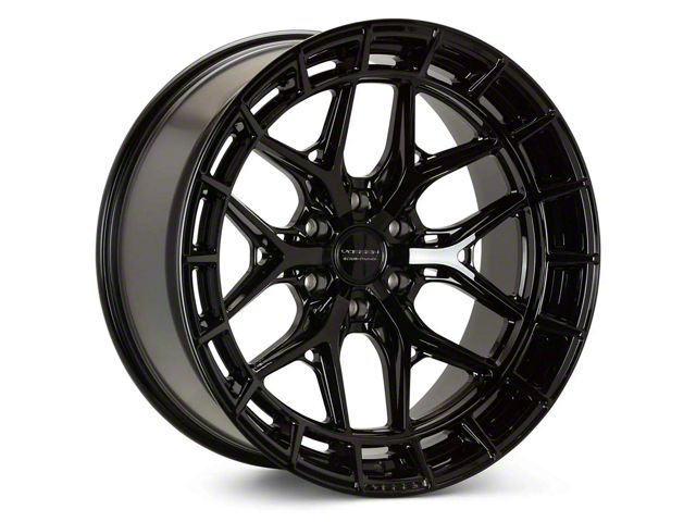 The 20x10 Vossen HFX1 Super Deep Gloss Black Wheel; 20x10 is completed in a high-quality gloss black finish that will make others green with envy. For added protection and good looks, this wheel features a durable clear coat that can withstand the hazards of daily driving.