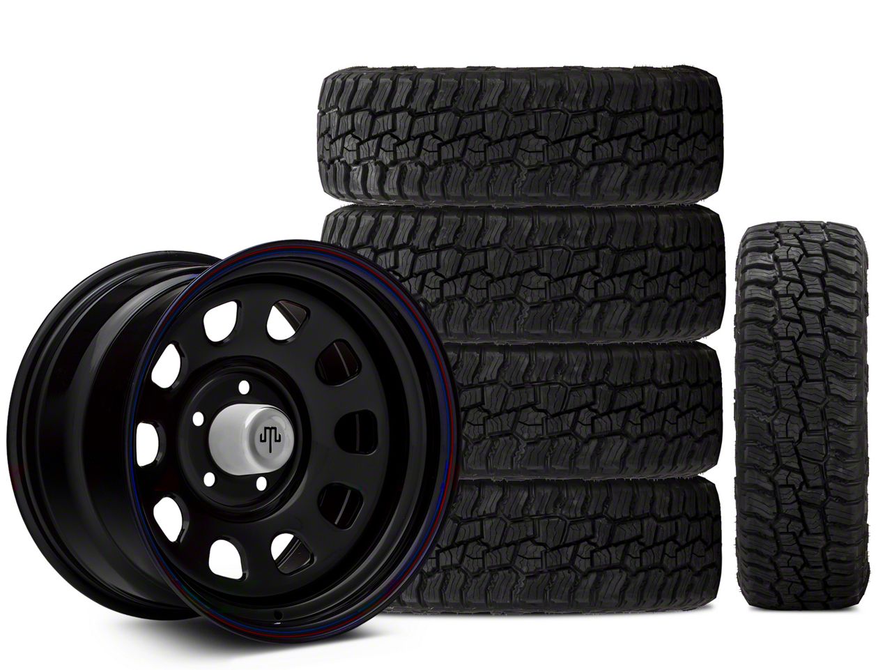 Application. This 17x9 Mammoth D Window and 33in Mickey Thompson All-Terrain Baja Boss A/T Tire Package is designed to fit 2007-2018 Jeep Wrangler JK Models.