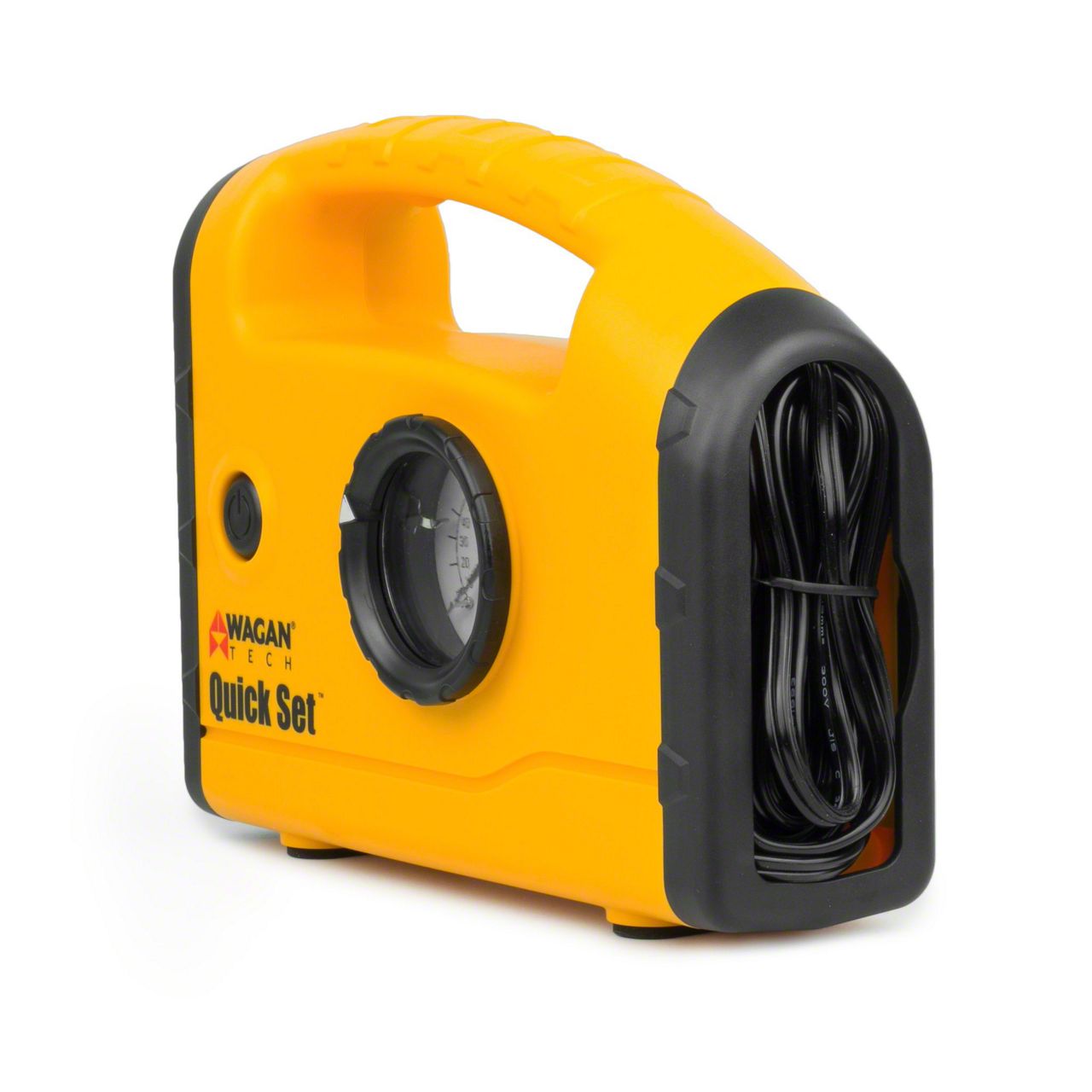 Quick-Set Pump. Whether its a limp tire, or a sports ball and raft, inflate anything in minutes with this 12-Volt Quick Set Inflator Compressor. Sporting its unique Quick-Set Dial, you can pre-program your desired pressure and simply press a button to get your item, equipment, or tire inflated, with little to no effort.