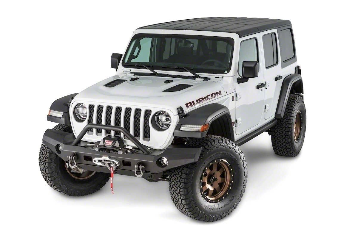Full-Featured Protection. The WARN Elite Full Width Winch Bumper for 2018-2026 Jeep Wrangler JL models delivers comprehensive front-end protection, blending a rugged full-width design with practical features. This direct replacement bumper includes a grille guard tube, integrated off-road jack lifting points, and shackle tabs, helping to shield your vehicle from bumps, hits, and other trail hazards while providing a secure step up for easy access.
