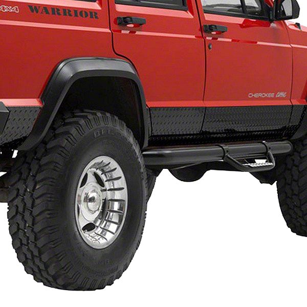 Protective. Made for the Jeep Cherokee XJ 2-door models, these Warrior Products Side plates come in a matte black finish. Built as a kit, these Warrior Products Side plates are crafted from aluminum plates and have a diamond threaded surface. These side plates are meant to protect your ride’s bodywork and paint job from hits, dents, and scratches during your on and off-world adventures.