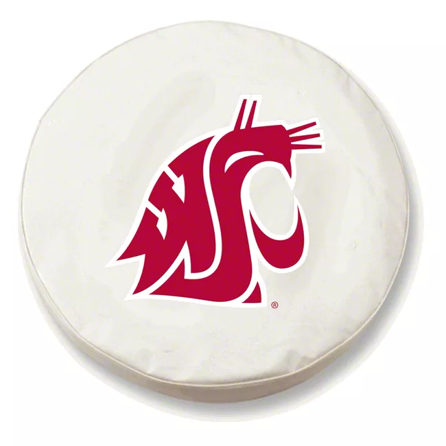 "Let's go Cougars, let's go!" Show your school some love with this awesome Washington State Tire Cover. Made from automotive grade vinyl and screen printed in a special process this Tire Cover was made in the USA. The Washington State Tire Cover is officially licensed so no need hide your Cougar pride!