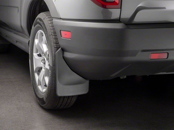 Effortless Protection. The Weathertech No-Drill Mud Flaps; Rear; Black provide robust defense against mud, dirt, and debris, helping to preserve your vehicle's finish. Engineered for easy application, these mud flaps are designed to protect critical fender and rocker panel areas without the complexity of traditional installation methods.