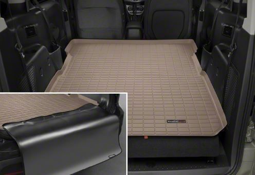 Application. This tan Weathertech DigitalFit Cargo Liner with Bumper Protector has been designed for use on all 2011-2014 Jeep Wrangler JK 4-Door models.
