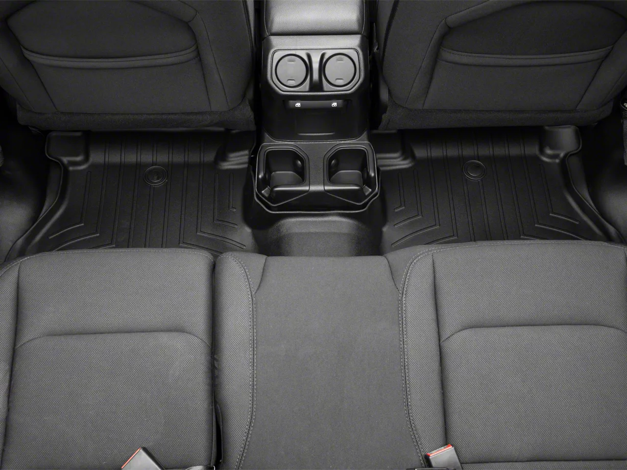 Application. Weathertech's Black DigitalFit Rear Floor Liners are made to perfectly fit all 2018-2026 Jeep Wrangler JLs with 4 doors, excluding 4xE models.