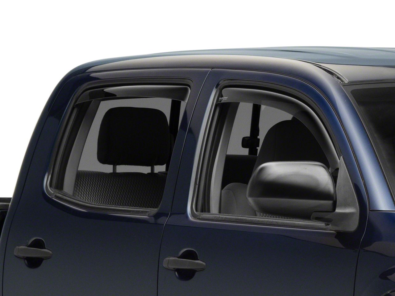 Application. These Weathertech Front & Rear Side Window Deflectors in Dark Smoke are designed for use with Toyota Tacoma Double Cab models manufactured from 2005- 2015.