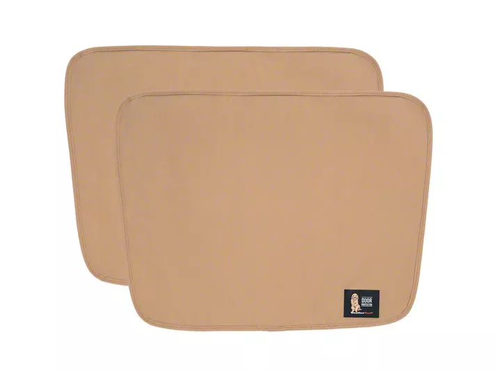 Construction and Appearance. Made from coated polyester fabric in a rich Tan shade, these door protectors are both durable and stain-resistant. They feature soft binding on the edges to ensure additional protection and a high-quality finish.