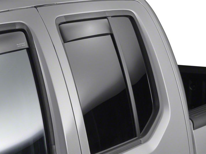WeatherTech Side Window Deflectors offer you fresh air enjoyment with an original equipment look. They are crafted in Germany from the finest 3mm lightly-tinted acrylic material available. Installation is quick and easy, with no exterior tape needed. WeatherTech Side Window Deflectors are precision-machined to perfectly fit your vehicle. These low profile window deflectors help to reduce wind noise and allow interior heat to escape. Also available in dark tint for most vehicles.