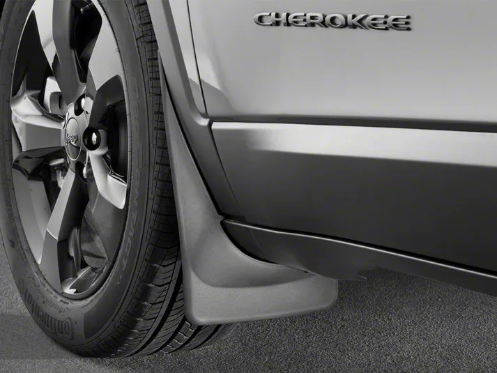 Application. This Weathertech No-Drill Mud Flaps for the Front in Black fits all 2014-2023 Jeep Cherokee KL w/ OE Fender Flares.