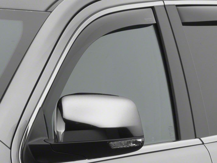 Rain and Debris Guards. Enjoy fresh air circulation inside your vehicle in whatever weather with the Weathertech Side Window Deflectors for the Front in Dark Smoke. This pair of side window deflectors protect your interior against rain, snow, or even flying debris while maintaining a fresh circulation of air inside. They have an OEM look to blend in seamlessly with the rest of your truck.