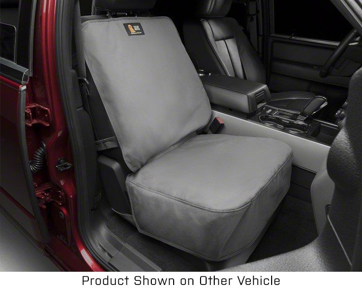 Durable Structure. The Weathertech Universal Front Bucket Seat Protector is a high-quality accessory designed to safeguard your vehicle's seats. Constructed with Polycotton Drill Fabric, it offers a combination of durability and comfort. The sleek gray design adds a touch of elegance to your car's interior while effectively protecting your seats from spills, stains, and everyday wear and tear. Equipped with durable straps, this seat protector stays securely in place, ensuring a snug fit.