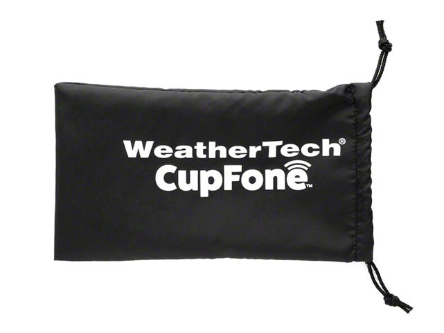 Description. The CupFone Storage Bag is a must-have for anyone that takes their CupFone with them when traveling, when switching vehicles, or even when hopping on a boat or hitting the golf course. The storage bag offers one convenient location to store all your unused base cups, the cup separator tool, any accessories and more! Have everything you need to change the fit of your CupFone in one easy-to-remember location. Made from strong 200 denier black nylon, the storage bag has twin pull strings that allow you to close it quickly and keep everything inside secure.
