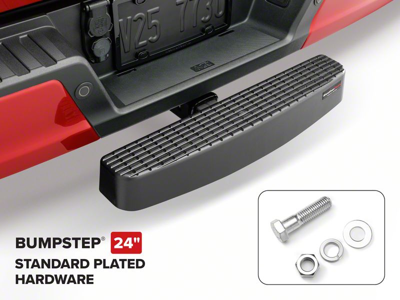 BumpStep is a trailer hitch-mounted bumper protector available in two widths: 12" and 24" (BumpStep XL), that defends your truck or SUV against rear end accidents, dents and scratches. Both options are molded from two proprietary resins for added strength and impact resistance. The base is molded from a sturdy material that resists flexing, while the second layer is a softer, impact absorbing material, lessening the blow caused by minor accidents. You will be happy to have it when that stray grocery cart or hard-to-see fire hydrant shows up! As a secondary benefit, and as the name implies, BumpStep doubles as a step, helping you reach your vehicle’s roof. BumpStep can support up to 300 lbs., providing you access to a roof rack, bike or kayak, or to wash the roof of your vehicle and brush off snow. For standard SUVs and trucks, choose regular BumpStep, and for larger vehicles, choose BumpStep XL to protect a greater portion of the vehicle’s bumper. BumpStep Hardware Options: We offer the BumpStep with a choice of two different hardware configurations: Standard Hardware Includes zinc plated hardware with a standard hex head bolt (fits 15/16" socket), nut, flat washer and lock washer. Theft Deterrent Hardware Stainless steel theft deterrent 1/2" Allen Key bolt to help prevent theft of your BumpStep XL. Stainless nut, flat washer and lock washer to further resist rust/corrosion even in the worst of environments.