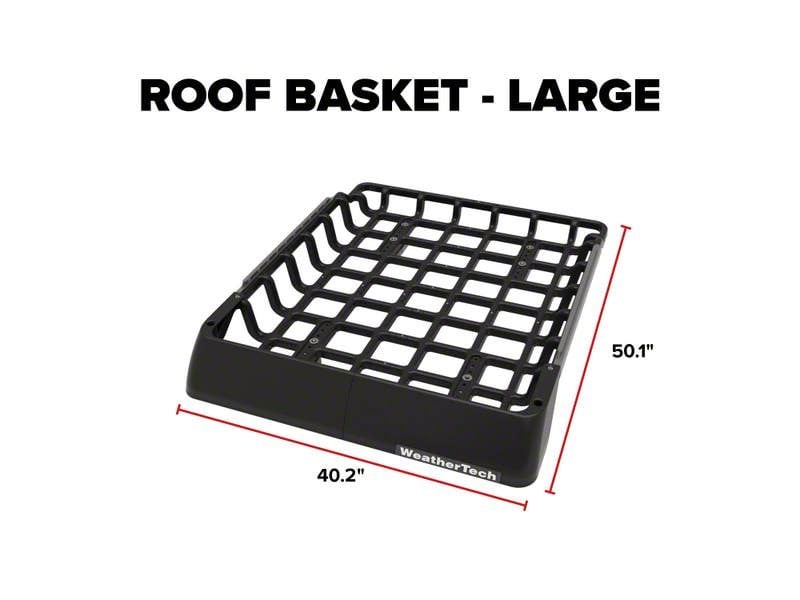Application. The Weathertech Roof Basket; Large offers universal fitment.