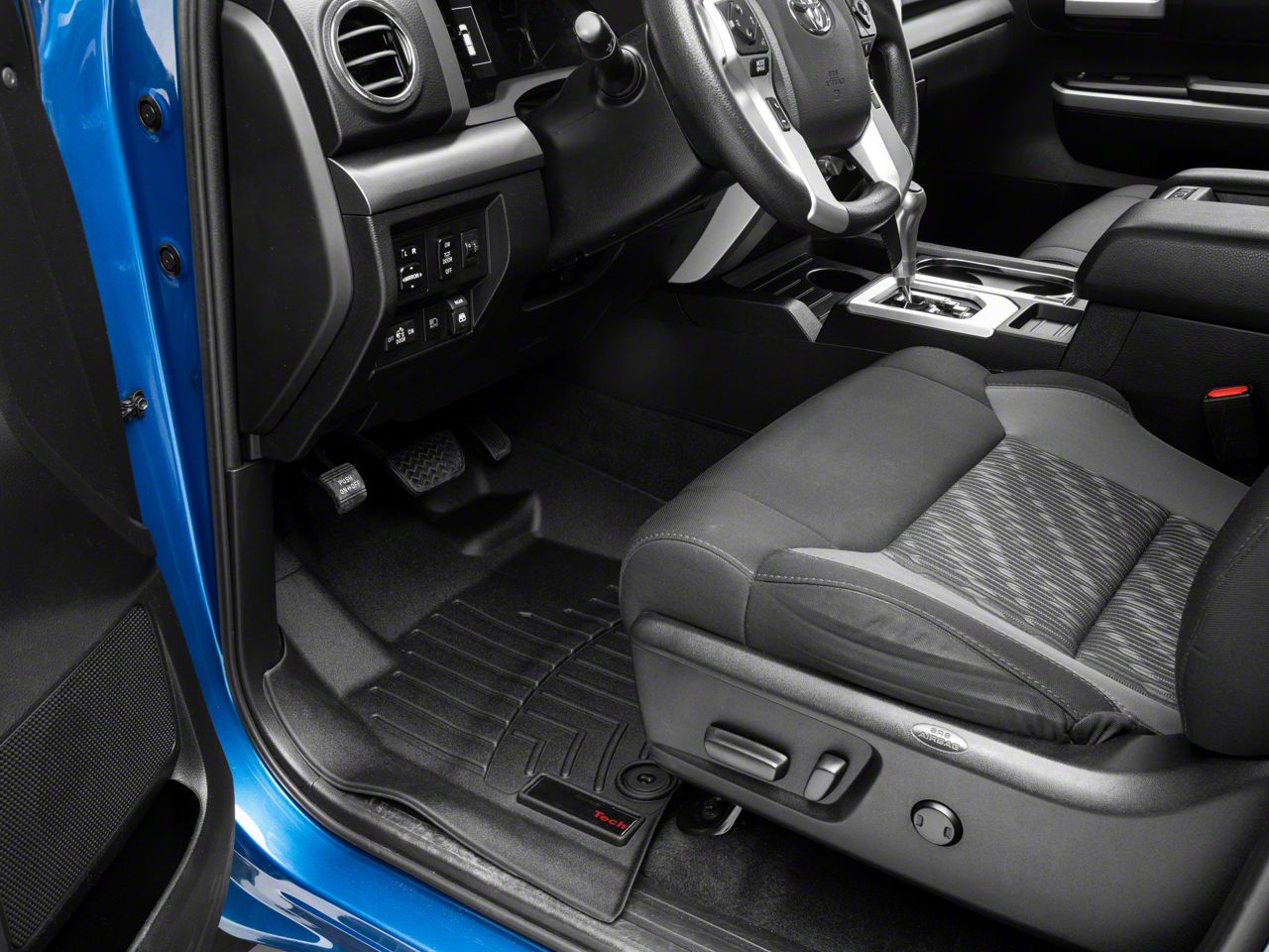For a Clean and Stylish Vehicle Interior. Maintain a pristine Toyota Tundra interior with the help of WeatherTech’s Black DigitalFit Front Floor Liners. These liners are constructed with advanced surfacing channels, which carry liquids, dust, dirt, and other debris into the liners’ lower reservoir. These reservoirs will contain all the mess until it’s time for cleanup, keeping stains away from your vehicle’s carpets, as well as your clothes.