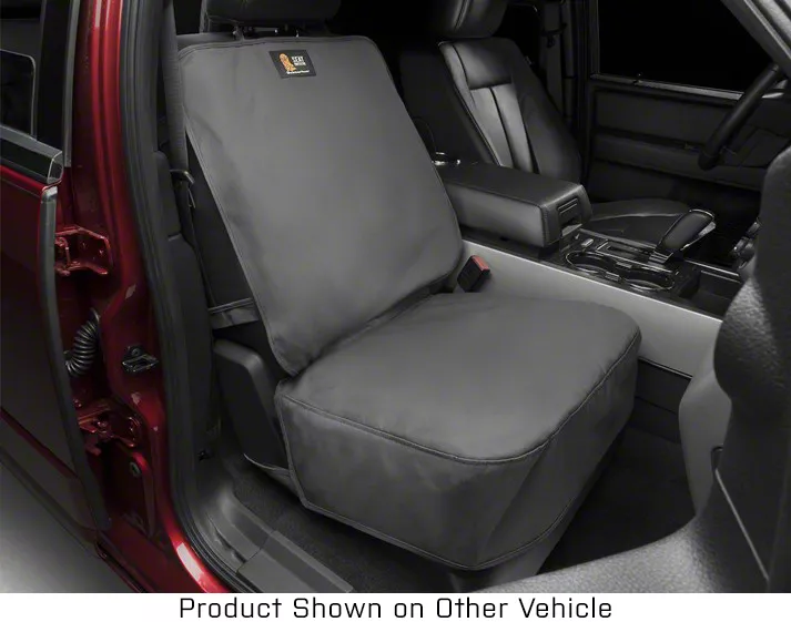 Optimal Front Seat Protection. Keep your front seats from getting stained and scratched with the Weathertech Front Seat Protector; Black. This rugged black front seat protector is constructed using a high-grade, water-repelling polycotton twill fabric and a thin nylon lining that keeps your seats free of any blemishes. Plus, it is machine washable for quick use time and time again.