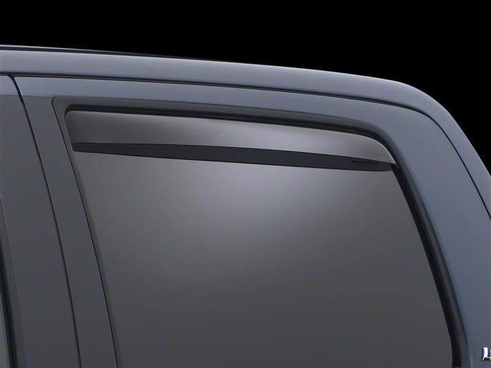 Prevents Interior Heat Build-Up. Accessorizing with these Dark Smoke Weathertech Rear Side Window Deflectors allow you to slightly open your truck’s windows so fresh air can keep coming in. Along with this, interior heat is able to escape for a more comfortable ride. What’s more, these window deflectors' sleek style help amplify your truck’s overall exterior.