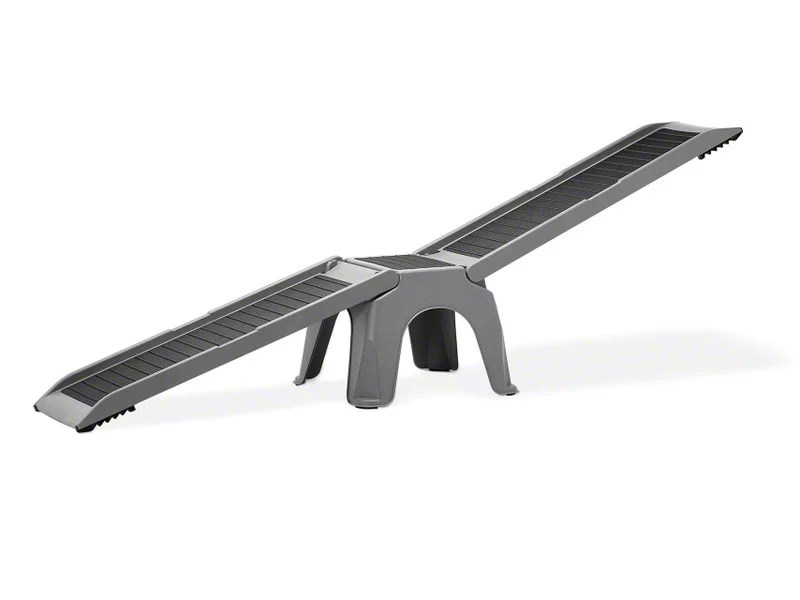 The WeatherTech EasyRamp helps pets of all ages access larger vehicles or higher areas that might normally be out of reach. It also helps pet owners who are unable to lift their pets without risking injury to themselves or their furry friends. The ramp’s heavy-duty construction supports up to 300 lbs., and the surface includes skid resistant specialized traction pads, keeping your pet safe and secure. When not in use, the ramp quickly breaks down into two ramps and a central "stool" for easy portability. Each component is incredibly lightweight; when fully assembled, EasyRamp weighs less than 21 lbs. Unlike shorter ramps, the EasyRamp’s specialized design provides an easier-to-use rate of incline. For most vehicles, the rate of incline will measure an easier 20-degree angle. Features Prevents back strain from lifting a dog into or out of your vehicle. Prevents injury to your dog from being lifted into or out of your vehicle. Designed, engineered and manufactured in America! The top of the ramp has a textured and skid resistant surface to provide extra traction for your pet. Features 3 components: 2 ramps and 1 central stool. Quickly and easily assembles, with both ramps securely locking into place in no time. Soft grippy feet on the ramps and the stool prevent the ramp from shifting on the ground or your vehicle. Heavy-duty; supports up to 300 lbs. Durable and easy to clean - EasyRamp won’t rust or corrode. Lightweight, EasyRamp weighs less than 21 lbs. fully assembled, with each individual component weighing less than 8 lbs. The upper and lower ramps measures 42" long and 15" wide. The surface of the stool measures 10" long by 15" wide and stands 15" tall.