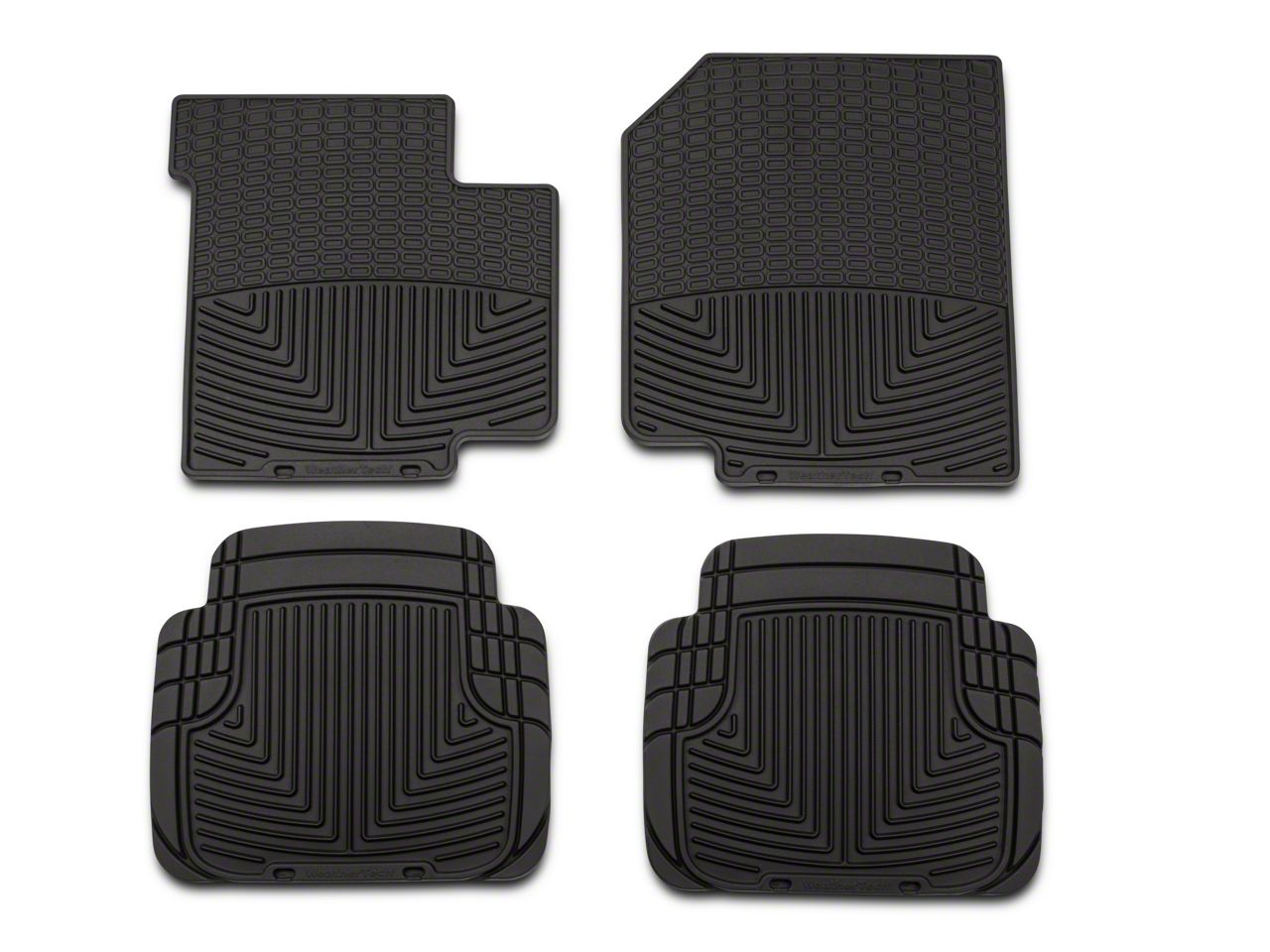 Durable Design. The Weathertech All-weather Front and Rear Rubber Mats are custom-molded to provide a perfect fit. They have deeply sculpted channels that contain coffee spills, mud, slurry, snow and other spills from sliding off into your expensive carpets. These mats feature anti-skid ridges to keep them firmly in place, providing you secure protection no matter where the road leads.