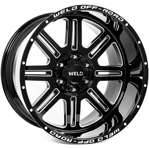 Weld Off-Road Chasm Gloss Black Milled 6-Lug Wheel; 20x12; -44mm Offset. The Weld Off-Road Chasm Gloss Black Milled 6-Lug Wheel offers a striking balance of style and refinement. Its unique design accentuates the vehicle's aesthetic, while the premium construction underscores its robust nature. This wheel is a perfect choice for those seeking both elegance and a strong visual statement.