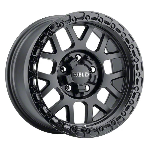 Weld Off-Road Cinch Satin Black with Gloss Black Ring Wheel; 17x8.5; 38mm OffsetThis wheel features a sleek and durable design, ideal for enhancing the aesthetic and style of your vehicle. Its quality craftsmanship ensures a perfect combination of form and function, suitable for any driver seeking a balance of style and dependability. Its high-quality finish ensures resistance against corrosion and wear over time. Designed for optimal visual appeal, this wheel complements a variety of vehicle styles.