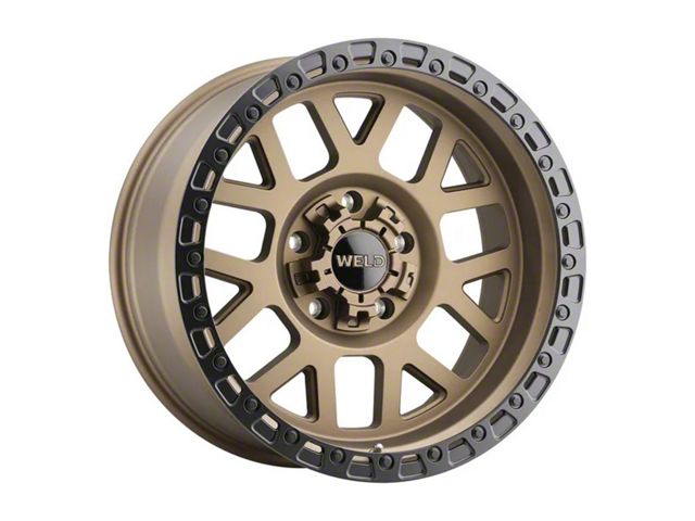 Weld Off-Road Cinch Satin Bronze with Satin Black Ring Wheel; 17x8.5; 38mm OffsetThis wheel features a sleek and durable design, ideal for enhancing the aesthetic and style of your vehicle. Its quality craftsmanship ensures a perfect combination of form and function, suitable for any driver seeking a balance of style and dependability. Its high-quality finish ensures resistance against corrosion and wear over time. Designed for optimal visual appeal, this wheel complements a variety of vehicle styles.