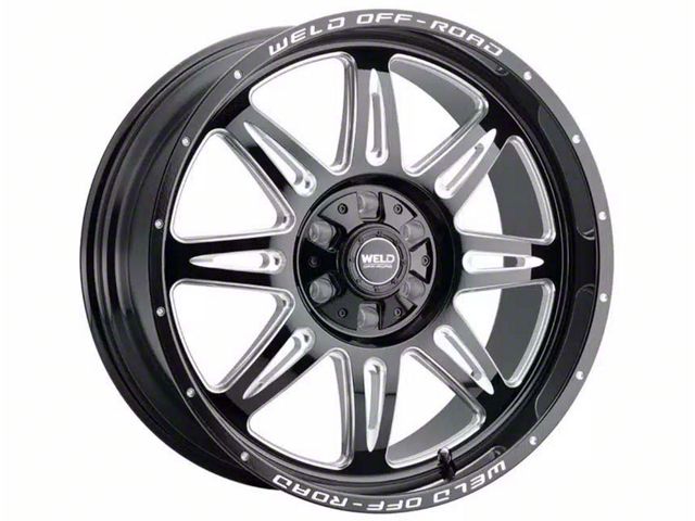 This 22x12 Weld Off-Road Cheyenne Gloss Black Milled 6-Lug Wheel; 22x12; -44mm Offset is completed in a gloss black finish with milled accents to make everyone green with envy. There is a durable clear coat that looks amazing and withstands the rigors of daily driving.