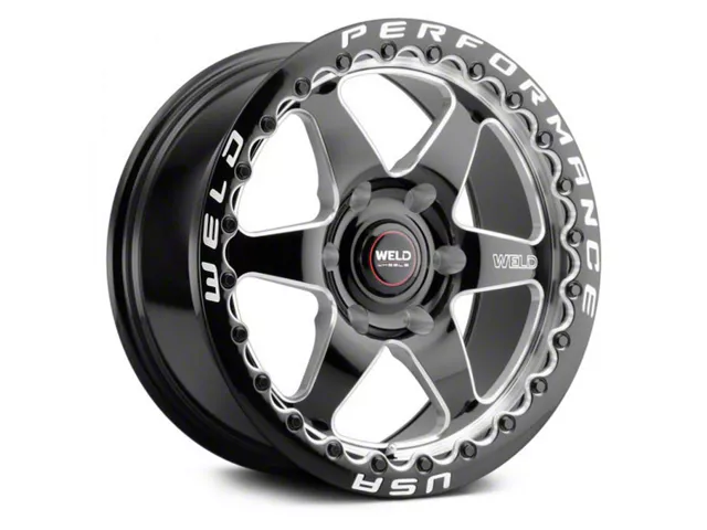 Weld Racing Ventura 6 Beadlock Gloss Black Milled 6-Lug Wheel; 20x10; 38mm Offset exudes a sleek aesthetic appeal, complementing a range of vehicle styles. Its dark stainless finish emanates sophistication, while the brand reputation of Weld Racing ensures robustness. This wheel seamlessly merges elegance with durability.