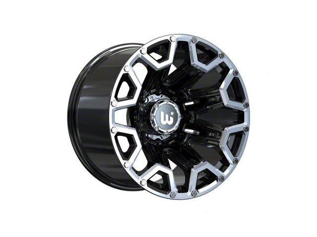 Wesrock Wheels Blaze Gloss Black Machined Silver Decorative Bolts 6-Lug Wheel; 20x12; -44mm Offset. The Wesrock Wheels Blaze Gloss Black Machined Silver Decorative Bolts 6-Lug Wheel; 20x12; -44mm Offset features a sleek and modern design that enhances the overall aesthetic of any vehicle. Its brushed gunmetal finish adds a touch of sophistication and complements various vehicle styles. This wheel's premium construction ensures durability and a robust appearance.
