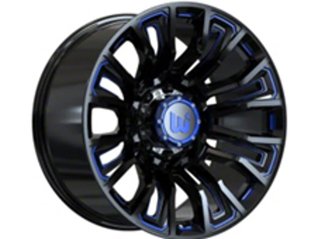 The 20x10 Wesrock Wheels Maverick Gloss Black Milled with Blue Tint 6-Lug Wheel; 20x10; -12mm Offset is completed in a high-quality gloss black finish with blue milled accents that will make others green with envy. For added protection and good looks, this wheel features a durable clear coat that can withstand the hazards of daily driving.