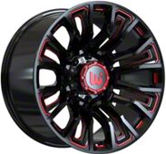 Wesrock Wheels Maverick Gloss Black Milled with Red Tint 6-Lug Wheel; 20x10; -12mm Offset delivers a bold and modern aesthetic, ideal for enthusiasts seeking a refined yet assertive look for their vehicle. With its standout design and distinct finish, this wheel enhances the vehicle's visual stance and street presence. The precise craftsmanship and premium aluminum build reflect Wesrock Wheels' dedication to quality and distinctive design. Whether parked or in motion, this wheel draws attention with its clean, aggressive styling.