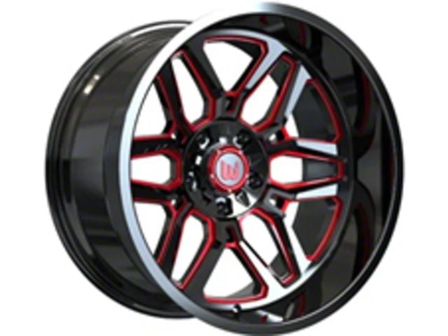 This 20x10 Wesrock Wheels Ranger Gloss Black Milled with Red Tint 6-Lug Wheel is completed in a high-quality, gloss black finish with red steel milled accents that will be the envy of everyone. There's a durable clear coat that protects against driving hazards.
