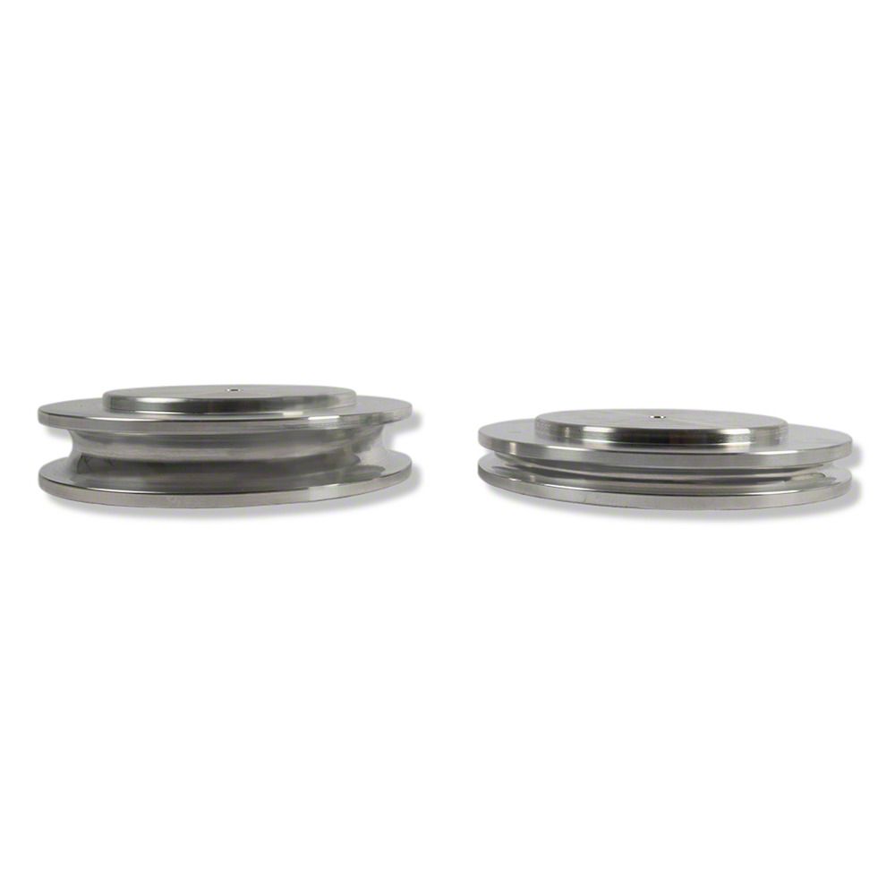 Construction and Appearance. Made from CNC machined billet aluminum, these pucks feature a durable black anodized finish that resists corrosion and wear while offering a sleek, refined appearance. Precision manufacturing ensures consistent fit and function for reliable performance.
