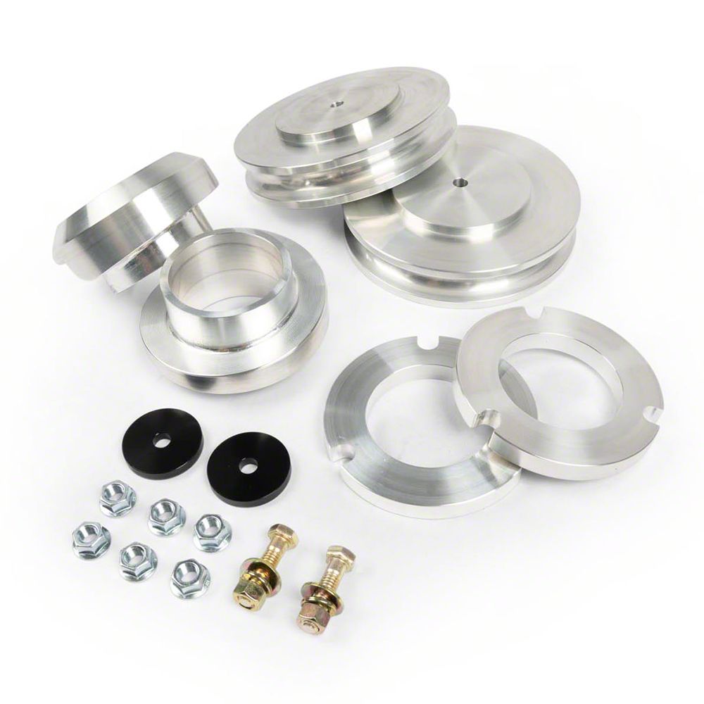 Level and Lift with Factory Comfort. This PreLoad Collar Lift Kit uses raw aluminum collars to raise the front suspension three inches and the rear one and a quarter inches, providing a level stance and extra ground clearance without altering the damping characteristics of the factory struts or shocks. By preloading the coil seat rather than compressing the spring, the design preserves factory ride quality and handling balance—ideal for daily driving and light off-road use. The 6061-T6 aluminum construction delivers exceptional strength and resists corrosion, ensuring the lift remains consistent over years of exposure to the elements.