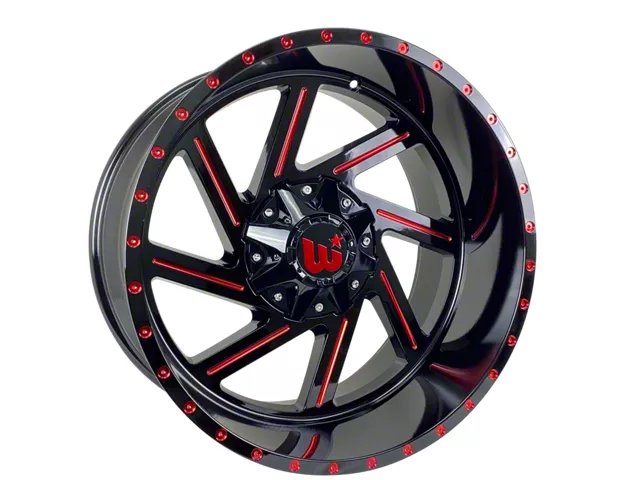 22x12 Western Wheels CACTUS Gloss Black with Red Milling Spokes and Spot 6-Lug Wheel is completed in a high-quality gloss black finish which will be the envy of everyone. There are red milling accents to provide a striking contrast.