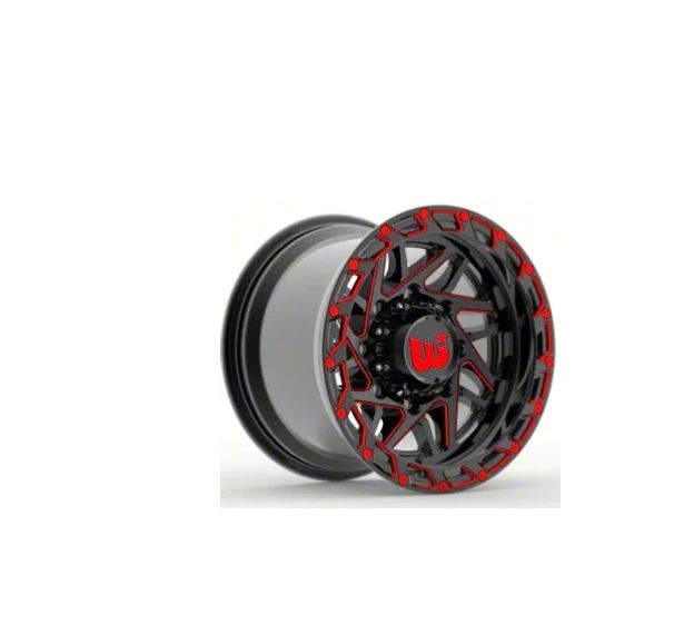 20x10 Western Wheels BOULDER Gloss Black with Red Milling Spokes and Spot Wheel is completed in a high-quality gloss black finish which will be the envy of everyone. There are red milling accents to provide a striking contrast.